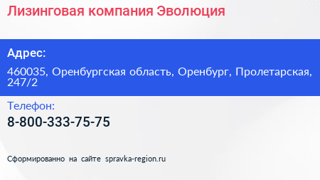 Лизинговая компания Эволюция по адресу 460035, Оренбургская область, Оренбург, Пролетарская, 247/2 в дальнейшем Организация, размещена в следующих категориях: