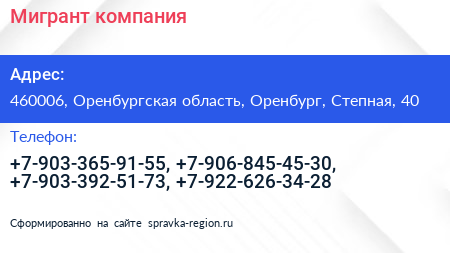 Мигрант, компания по адресу 460006, Оренбургская область, Оренбург, Степная, 40 в дальнейшем Организация, размещена в следующих категориях: