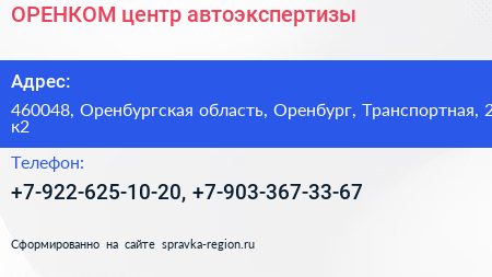 ОРЕНКОМ, центр автоэкспертизы по адресу 460048, Оренбургская область, Оренбург, Транспортная, 2 к2 в дальнейшем Организация, размещена в следующих категориях: