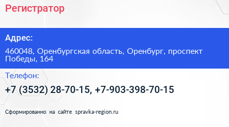 Регистратор по адресу 460048, Оренбургская область, Оренбург, проспект Победы, 164 в дальнейшем Организация, размещена в следующих категориях: