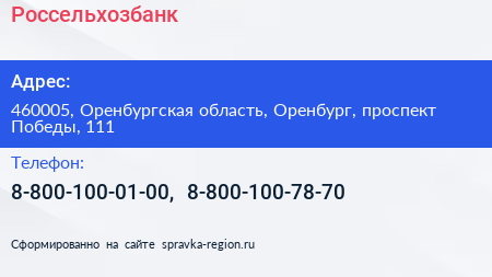 Россельхозбанк по адресу 460005, Оренбургская область, Оренбург, проспект Победы, 111 в дальнейшем Организация, размещена в следующих категориях:
