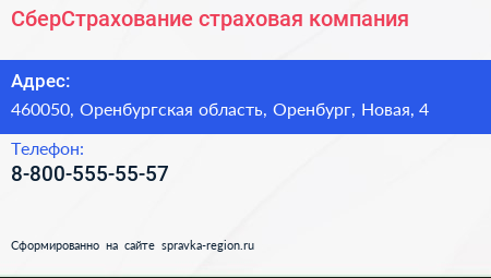 СберСтрахование, страховая компания по адресу 460050, Оренбургская область, Оренбург, Новая, 4 в дальнейшем Организация, размещена в следующих категориях: