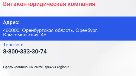 Витакон, юридическая компания по адресу 460000, Оренбургская область, Оренбург, Комсомольская, 46 в дальнейшем Организация, размещена в следующих категориях: