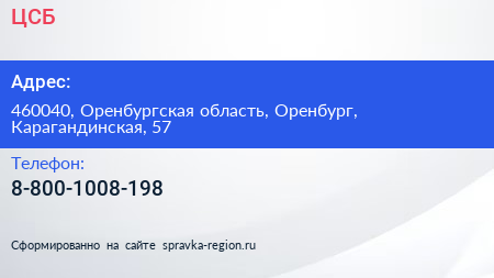 ЦСБ по адресу 460040, Оренбургская область, Оренбург, Карагандинская, 57 в дальнейшем Организация, размещена в следующих категориях: