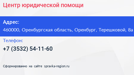 Центр юридической помощи по адресу 460000, Оренбургская область, Оренбург, Терешковой, 8а в дальнейшем Организация, размещена в следующих категориях: