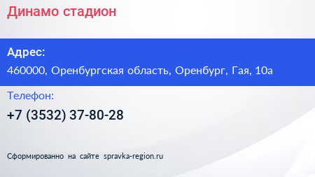 Динамо, стадион по адресу 460000, Оренбургская область, Оренбург, Гая, 10а в дальнейшем Организация, размещена в следующих категориях: