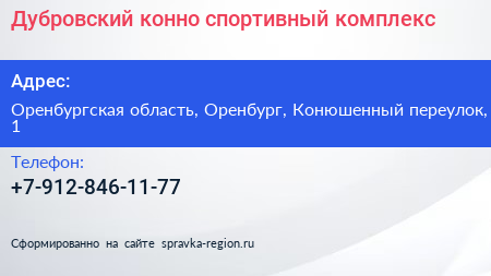 Дубровский, конно-спортивный комплекс по адресу Оренбургская область, Оренбург, Конюшенный переулок, 1 в дальнейшем Организация, размещена в следующих категориях: