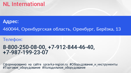 NL International по адресу 460044, Оренбургская область, Оренбург, Берёзка, 13 в дальнейшем Организация, размещена в следующих категориях: