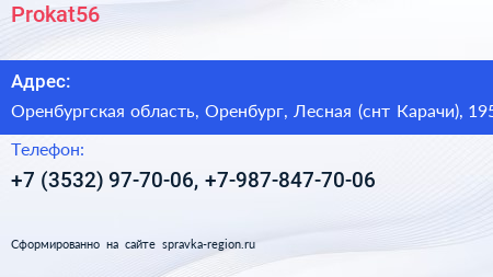 Prokat56 по адресу Оренбургская область, Оренбург, Лесная (снт Карачи), 195 в дальнейшем Организация, размещена в следующих категориях: