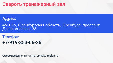 Сварогъ, тренажерный зал по адресу 460056, Оренбургская область, Оренбург, проспект Дзержинского, 36 в дальнейшем Организация, размещена в следующих категориях: