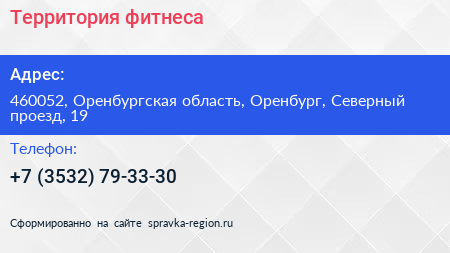 Территория фитнеса по адресу 460052, Оренбургская область, Оренбург, Северный проезд, 19 в дальнейшем Организация, размещена в следующих категориях: