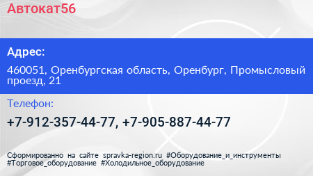 Автокат56 по адресу 460051, Оренбургская область, Оренбург, Промысловый проезд, 21 в дальнейшем Организация, размещена в следующих категориях: