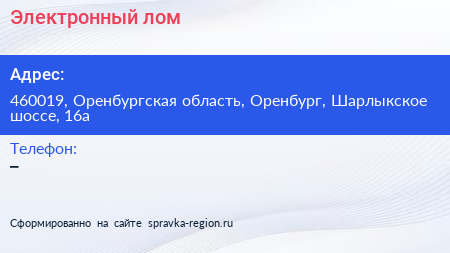 Электронный лом по адресу 460019, Оренбургская область, Оренбург, Шарлыкское шоссе, 16а в дальнейшем Организация, размещена в следующих категориях: