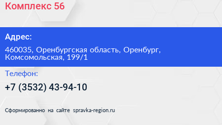 Комплекс 56 по адресу 460035, Оренбургская область, Оренбург, Комсомольская, 199/1 в дальнейшем Организация, размещена в следующих категориях: