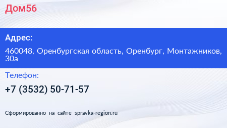 Дом56 по адресу 460048, Оренбургская область, Оренбург, Монтажников, 30а в дальнейшем Организация, размещена в следующих категориях: