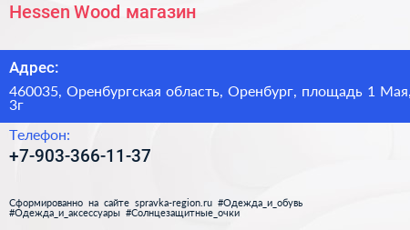 Hessen Wood, магазин по адресу 460035, Оренбургская область, Оренбург, площадь 1 Мая, 3г в дальнейшем Организация, размещена в следующих категориях: