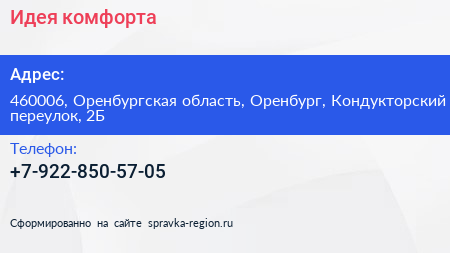 Идея комфорта по адресу 460006, Оренбургская область, Оренбург, Кондукторский переулок, 2Б в дальнейшем Организация, размещена в следующих категориях: