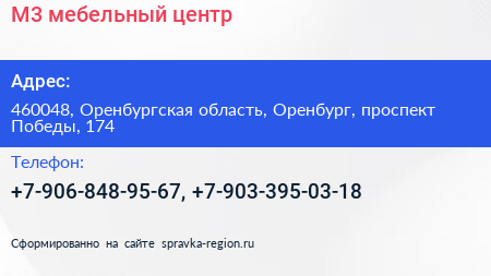 М3, мебельный центр по адресу 460048, Оренбургская область, Оренбург, проспект Победы, 174 в дальнейшем Организация, размещена в следующих категориях: