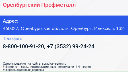 Оренбургский Профметалл по адресу 460027, Оренбургская область, Оренбург, Илекская, 132 в дальнейшем Организация, размещена в следующих категориях: