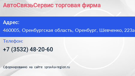 АвтоСвязьСервис, торговая фирма по адресу 460005, Оренбургская область, Оренбург, Шевченко, 223а в дальнейшем Организация, размещена в следующих категориях: