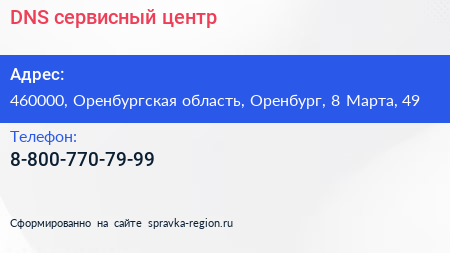 DNS, сервисный центр по адресу 460000, Оренбургская область, Оренбург, 8 Марта, 49 в дальнейшем Организация, размещена в следующих категориях: