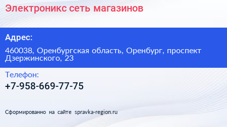 Электроникс, сеть магазинов по адресу 460038, Оренбургская область, Оренбург, проспект Дзержинского, 23 в дальнейшем Организация, размещена в следующих категориях: