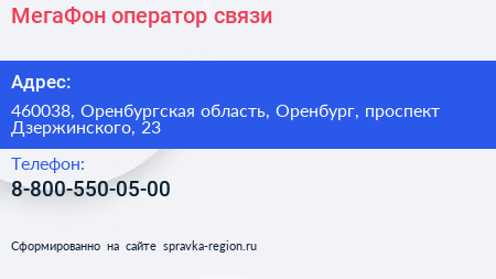 МегаФон, оператор связи по адресу 460038, Оренбургская область, Оренбург, проспект Дзержинского, 23 в дальнейшем Организация, размещена в следующих категориях: