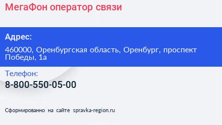 МегаФон, оператор связи по адресу 460000, Оренбургская область, Оренбург, проспект Победы, 1а в дальнейшем Организация, размещена в следующих категориях: