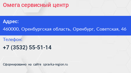Омега, сервисный центр по адресу 460000, Оренбургская область, Оренбург, Советская, 46 в дальнейшем Организация, размещена в следующих категориях: