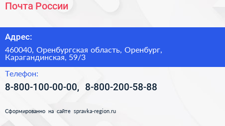 Почта России по адресу 460040, Оренбургская область, Оренбург, Карагандинская, 59/3 в дальнейшем Организация, размещена в следующих категориях: