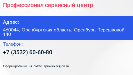 Профессионал, сервисный центр по адресу 460044, Оренбургская область, Оренбург, Терешковой, 140 в дальнейшем Организация, размещена в следующих категориях: