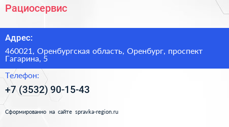Рациосервис по адресу 460021, Оренбургская область, Оренбург, проспект Гагарина, 5 в дальнейшем Организация, размещена в следующих категориях: