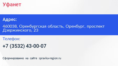 Уфанет по адресу 460038, Оренбургская область, Оренбург, проспект Дзержинского, 23 в дальнейшем Организация, размещена в следующих категориях: