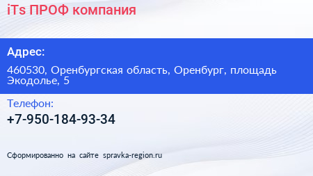 iTs ПРОФ, компания по адресу 460530, Оренбургская область, Оренбург, площадь Экодолье, 5 в дальнейшем Организация, размещена в следующих категориях: