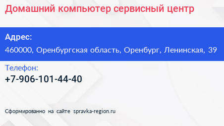 Домашний компьютер, сервисный центр по адресу 460000, Оренбургская область, Оренбург, Ленинская, 39 в дальнейшем Организация, размещена в следующих категориях: