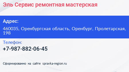 Эль-Сервис, ремонтная мастерская по адресу 460035, Оренбургская область, Оренбург, Пролетарская, 198 в дальнейшем Организация, размещена в следующих категориях: