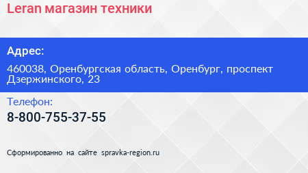 Leran, магазин техники по адресу 460038, Оренбургская область, Оренбург, проспект Дзержинского, 23 в дальнейшем Организация, размещена в следующих категориях: