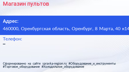 Магазин пультов по адресу 460000, Оренбургская область, Оренбург, 8 Марта, 40 к14 в дальнейшем Организация, размещена в следующих категориях: