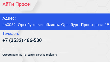 АйТи-Профи по адресу 460052, Оренбургская область, Оренбург, Просторная, 19 в дальнейшем Организация, размещена в следующих категориях: