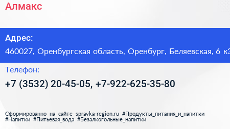 Алмакс по адресу 460027, Оренбургская область, Оренбург, Беляевская, 6 к3 в дальнейшем Организация, размещена в следующих категориях: