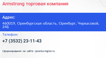 Armstrong, торговая компания по адресу 460019, Оренбургская область, Оренбург, Черкасовой, 24Б в дальнейшем Организация, размещена в следующих категориях: