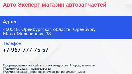 Авто Эксперт, магазин автозапчастей по адресу 460018, Оренбургская область, Оренбург, Мало-Мельничная, 38 в дальнейшем Организация, размещена в следующих категориях: