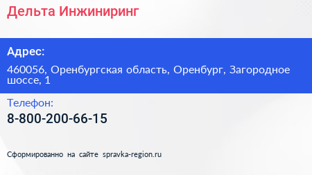 Дельта-Инжиниринг по адресу 460056, Оренбургская область, Оренбург, Загородное шоссе, 1 в дальнейшем Организация, размещена в следующих категориях: