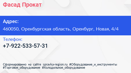 Фасад-Прокат по адресу 460050, Оренбургская область, Оренбург, Новая, 4/4 в дальнейшем Организация, размещена в следующих категориях: