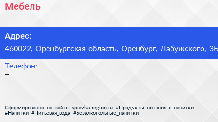 Мебель + по адресу 460022, Оренбургская область, Оренбург, Лабужского, 3Б в дальнейшем Организация, размещена в следующих категориях: