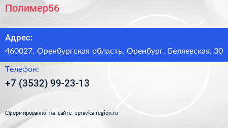 Полимер56 по адресу 460027, Оренбургская область, Оренбург, Беляевская, 30 в дальнейшем Организация, размещена в следующих категориях: