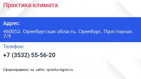 Практика климата по адресу 460052, Оренбургская область, Оренбург, Просторная, 7/9 в дальнейшем Организация, размещена в следующих категориях: