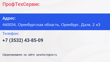 ПрофТехСервис по адресу 460034, Оренбургская область, Оренбург, Даля, 2 к3 в дальнейшем Организация, размещена в следующих категориях: