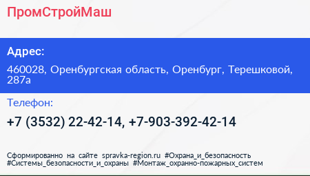 ПромСтройМаш по адресу 460028, Оренбургская область, Оренбург, Терешковой, 287а в дальнейшем Организация, размещена в следующих категориях: