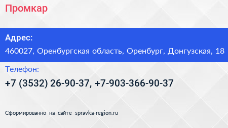Промкар по адресу 460027, Оренбургская область, Оренбург, Донгузская, 18 в дальнейшем Организация, размещена в следующих категориях: